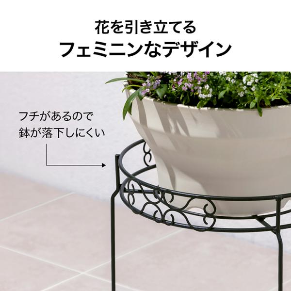 お花が美しく映えるフラワースタンド。フチがあるので鉢が落下しにくい、大き目の鉢が置ける内径30cm設計。
