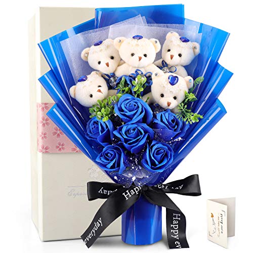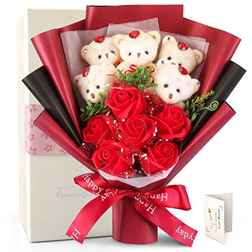 FAUHAL 2,327 view FAUHAL 超可愛いクマ花束 ソープフラワー(ベア6匹,ローズ5輪) くまのぬいぐるみ 石鹸花束 クマ花束 バラ 花束+ベアブーケ 教師の日 デート用 お盆 バレンタインデー 彼女にプレゼント 色々
