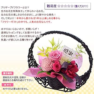 枯れないお花 プリザーブドフラワー。 水やりなど必要がないので、お忙しい方にぴったり。 和風デザインで素敵 モダンなデザインなので和風なお家にはもちろん、洋風なお家にも飾れます。 ◆商品詳細 ●プリザーブドフラワー花宵月/ お取扱い説明書/品質保証付ショップカード *植物に付き、商品画像とはお花のお色や大きさが多少異なる場合がございます *資材は変更になる場合がございます。 ご了承くださいませ <お取扱い説明書> ・フリーダイヤルを記載した詳しい取扱説明書を同封してお届けいたします。 長く楽しんでいただけますように ◆サイズ プリザーブドフラワー:高さ約18 X 横幅約18 X 奥行約6cm