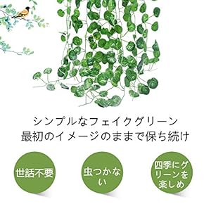 飾りの形式多様化 ❀ 壁掛け式なので、垣根や本棚に絡め、カーテンに吊り、植木鉢に入れ、クリスマス装飾用のLEDライトに巻き付き、柵に結ぶように色々な形式で対応できます。思う通りにデザイし、DIYの楽を随分にお楽しめます。 ❀ シンプルなアーティフィシャルグリーンなので、フラワーと組み合わせても自然感が増えてきます。ご必要に応じて長さをカットしても良く、長さ不足の場合、何本の繋がりもできます。 ❀ 人工藤を整える時は、長い枝が内側に・短い枝が外側になるように、枝を広げて形を整えふわふわさせてボリュームを出してあげるとより雰囲気を引き立て、自然な感じで部屋に溶け込みました。装飾場所を選ばず ❀ インテリアのスタイルに拘らず豪華な洋風と素朴な和風はどっちでも相性が良く、ナチュラルに空間を緑化します。 ❀ 室内のベランダ、寝室、洗面台、キッチン、窓、玄関、お風呂場、事務所、宴会の飾り付けは勿論、屋外のガーデン、花園、廊下、お店舗、結婚式、パーティー、工事現場の美化等いろんなシーンでご利用頂き、自然の雰囲気を演出してくれます。