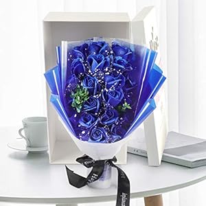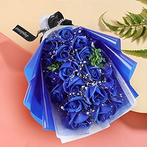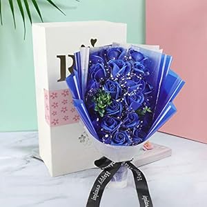 FAUHAL 純潔な色、海のような青色、青空で17枚花びらが自然に満開している姿が生き生き、バラ ソープフラワー シャボンフラワー 枯れない花 石鹸花 花 造花 花束 ブーケ 创意プレゼント お礼用