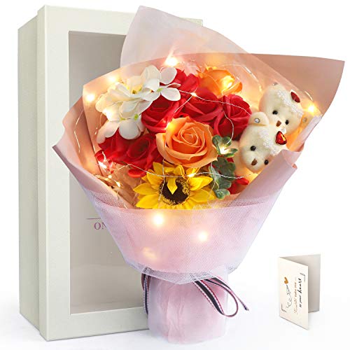 FAUHAL 698 view FAUHAL LEDイルミネーション ひまわり ソープフラワー ベア 枯れない花 石鹸花 バラ 造花 花束くま束 ブーケ 2匹可愛いぬいぐるみ 创意的な誕生日プレゼント結婚式 記念日 デート お盆 教