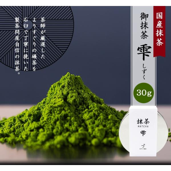 抹茶 薄茶 国産 抹茶 雫30g 缶入り 抹茶パウダー 濃茶 粉末 お茶 日本茶 茶道 無着色 無香料 お稽古 石臼 茶会 お点前 製菓 製パン