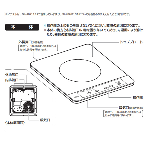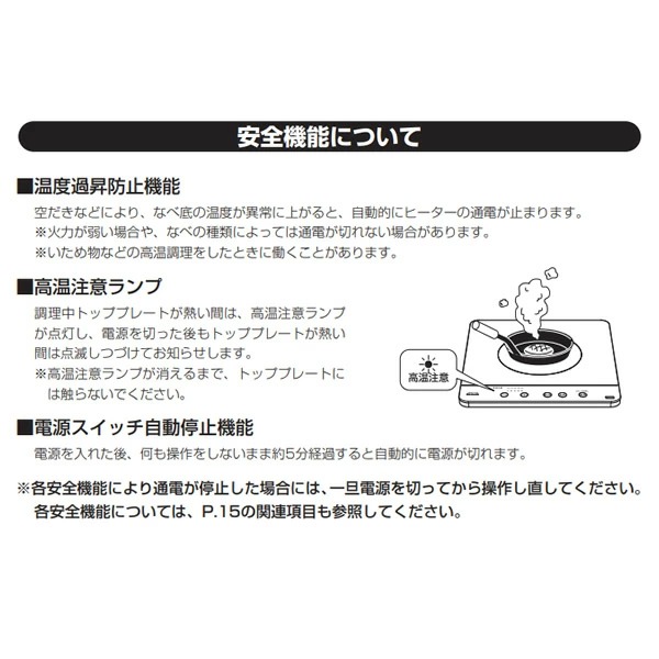 やけど注意:トッププレートが高温の時ランプ点灯