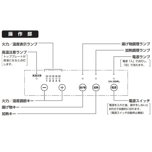 ■付加機能:温度調節機能:保温・160℃〜200℃ 5段階