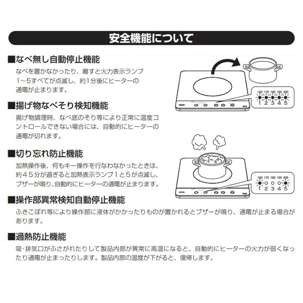 ■ヒーター:消費電力:2000W/火力調節:300W相当〜2000W 5段階