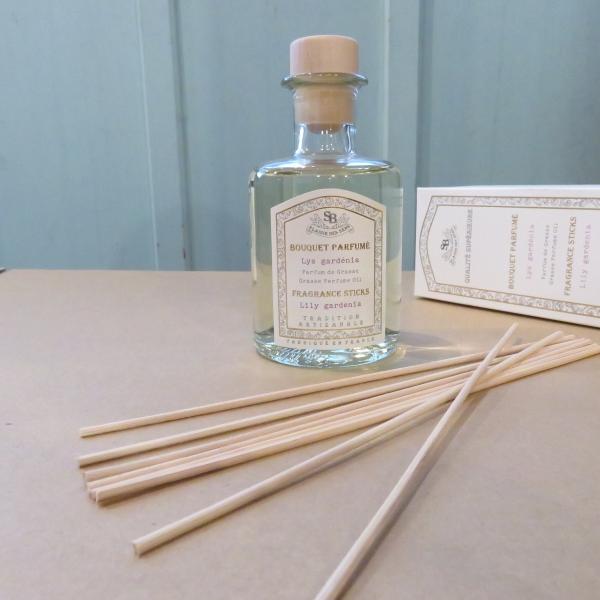 フレグランスブーケはヨーロッパで幅広く愛用されている室内用芳香剤です。お洒落な小瓶にスティックを差し込めば、染み込んだグラース産の上品な香りがやさしく広がります。玄関やお部屋に置けばインテリアとしても素敵です。専用リフィルとステックを交換すれば、ずっと香りを楽しんでいただけます。放散期間は約2ヶ月。