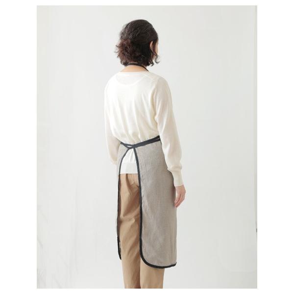 リネンパイピングエプロンパイピングの色がアクセントになって、フェミニンな印象のエプロンです。身幅が狭く、さっと身につけやすいデザイン。お料理教室やお稽古などにも。LINEN PIPING APRON