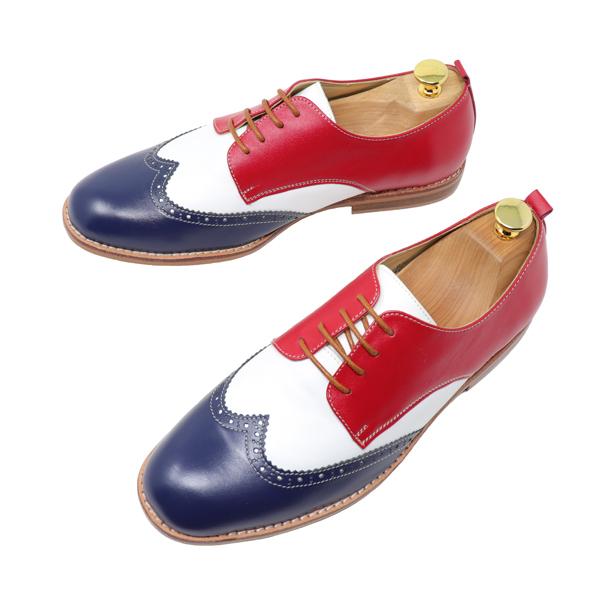 GLENFORD 本革 トリコロール ウィングチップ ホワイト&ネイビー&レッド ホワイト&ブラック&ベージュ シューズ サドルシューズ 824