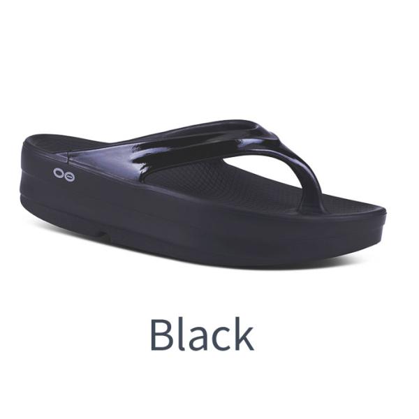 OOFOS Women's OOmega / ウーフォス ウーメガ 厚底 リカバリーサンダル トングサンダル ビーチサンダル ブラック ノマド 200044