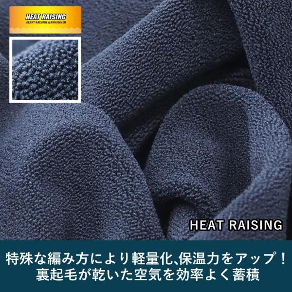特殊な編み方により従来モデルより軽量化、保温力をアップさせたHEAT RAISINGが乾いた空気を効率よく蓄積。