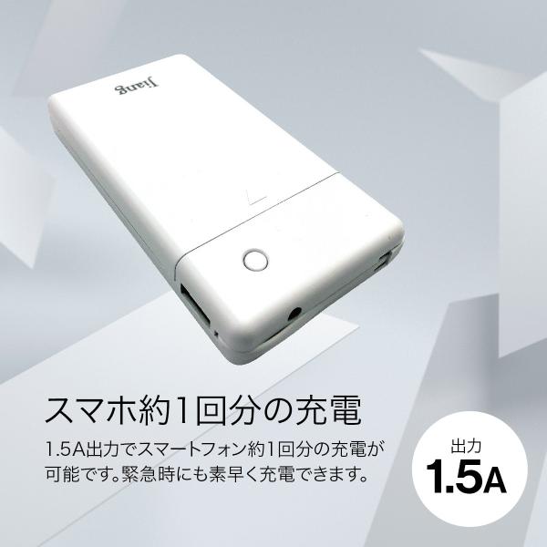 1.5A出力でスマートフォン約1回分の充電が可能です。