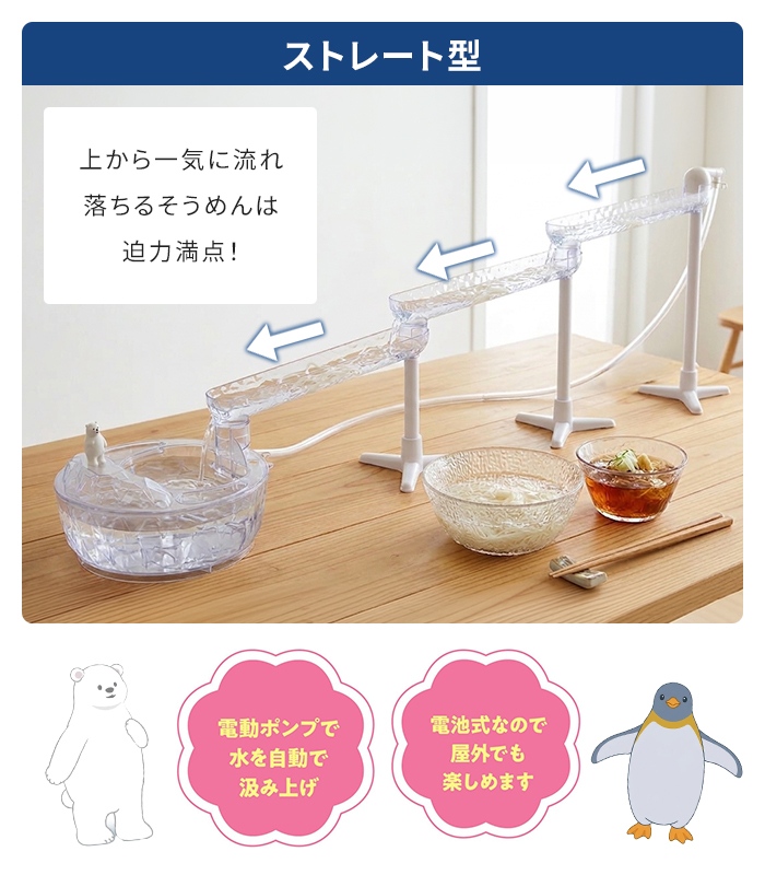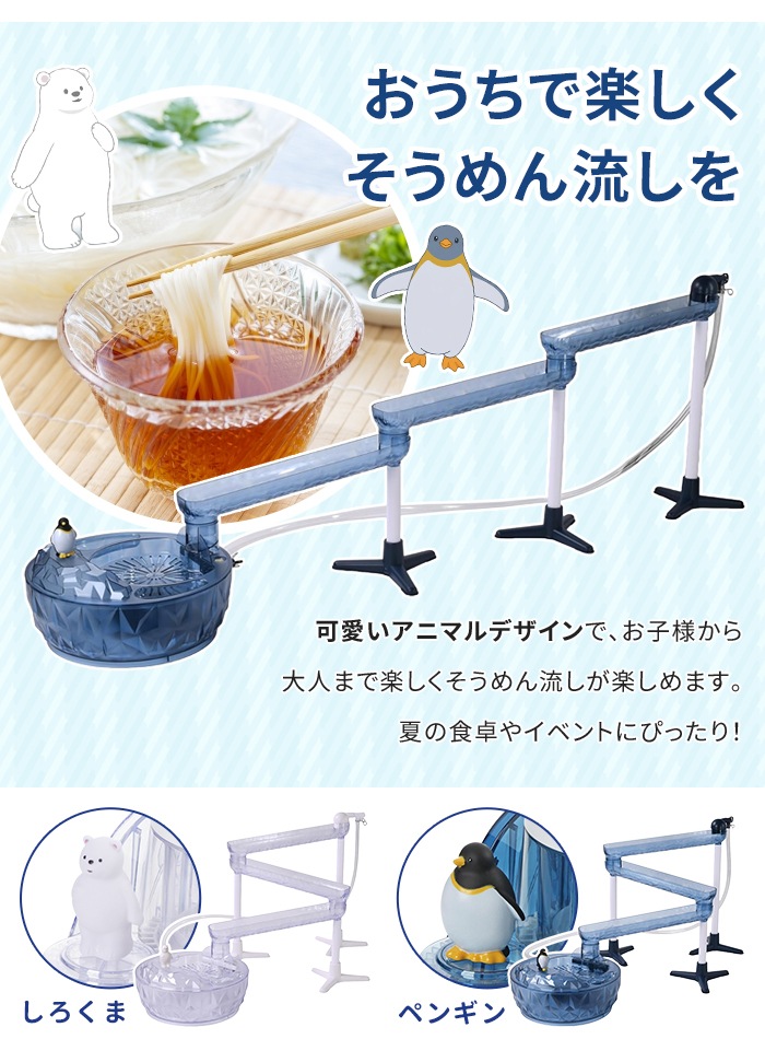 そうめん流し器 スライダー 流しそうめん機 電動 しろくま ペンギン 家庭用 そうめん 流し 電池式 卓上 流しそうめん器 夏 おうち縁日 子供 大人 夏休み 屋外