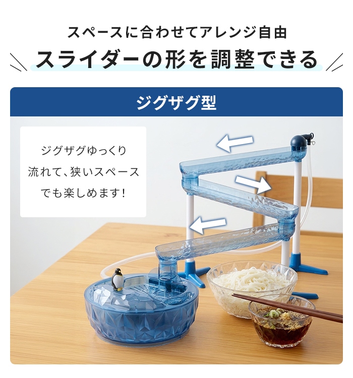 おうちで楽しくそうめん流しができる、スライダータイプのそうめん流し器です。
