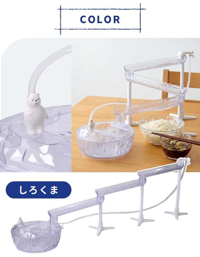 可愛いしろくまデザインで、お子様から大人まで楽しくそうめん流しが楽しめます。