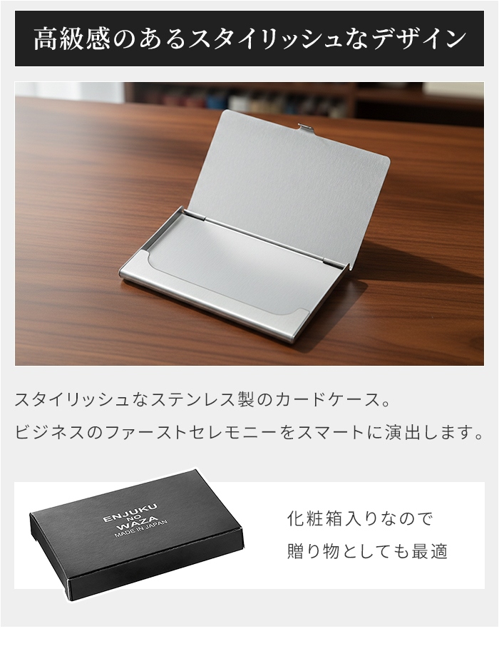 ステンレス カードケース 名刺入れ 名刺ケース 名刺ホルダー 名刺収納 日本製 燕三条 燕 金属製 ステンレス製 薄型 スリム コンパクト 高級 高級感 上質 ビジネス ビジネス用品 仕事用 営業 社会人 メンズ レディース 男女兼用 就職 就職活動 就職祝い 昇進 昇進祝い 転職祝い 父の日 母の日 敬老の日 ギフト プレゼント 贈り物 新生活 一人暮らし