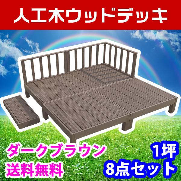 ウッドデッキ 人工木 diy キット おしゃれ 樹脂 材料 縁側 庭 ガーデン 手すり 階段 人工木材 8点セット 1坪