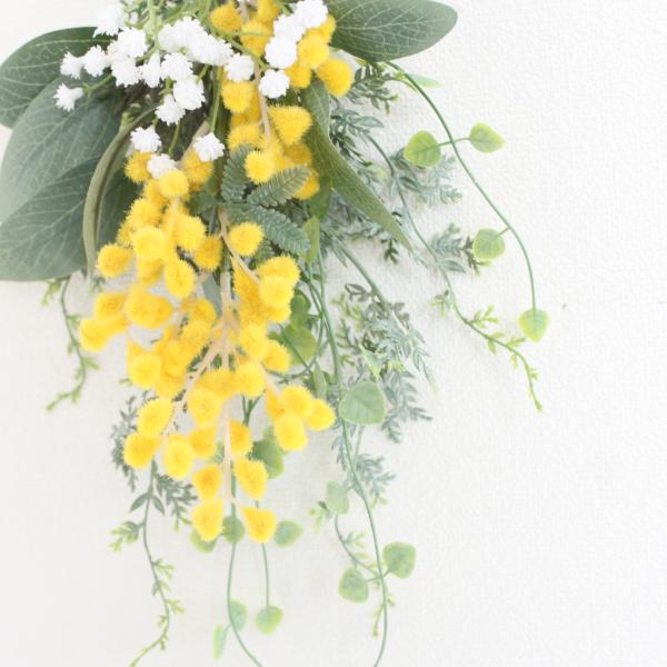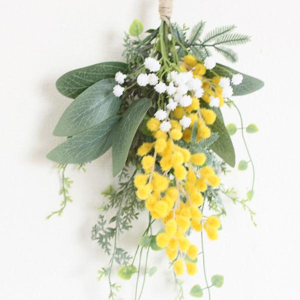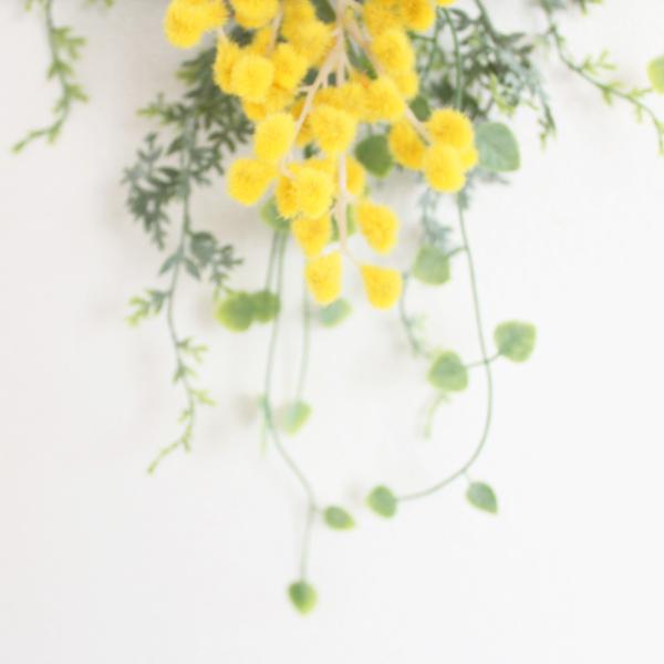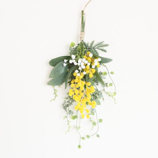 ミモザ ミニリース 壁掛け スワッグ おしゃれ 玄関ドア 送料無料 アーティフィシャルフラワー 造花 フェイクグリーン