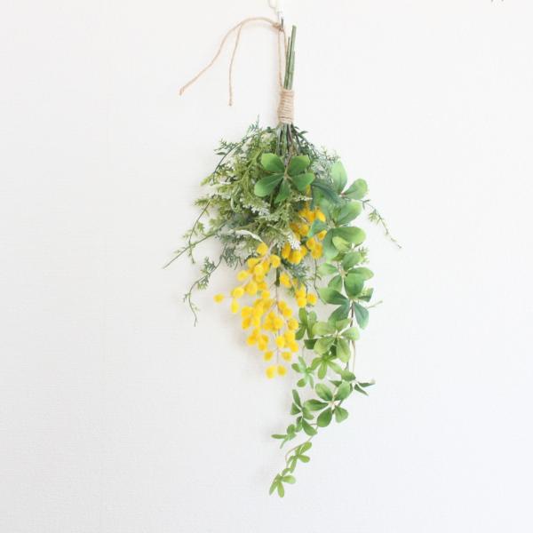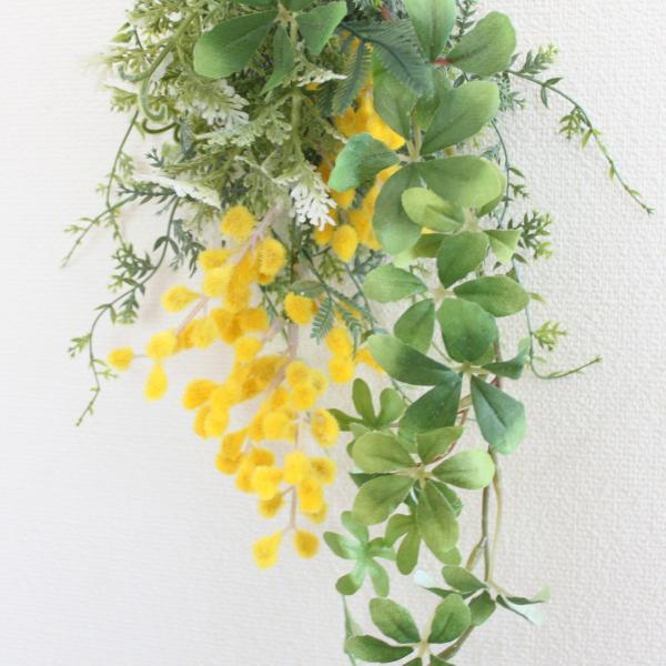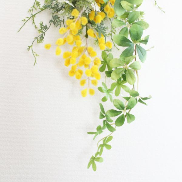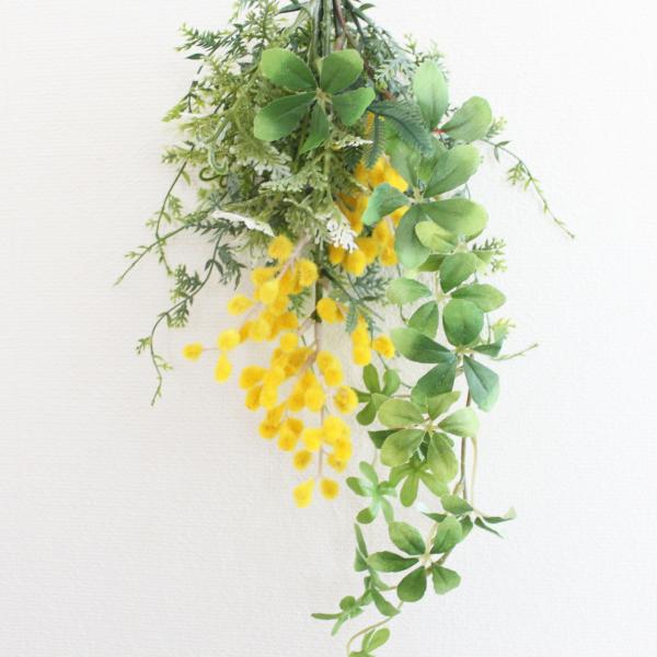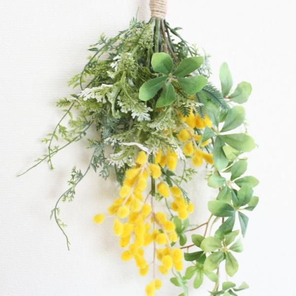 ミモザ&シュガーバイン ミニリース 壁掛け スワッグ おしゃれ 玄関ドア 送料無料 アーティフィシャルフラワー 造花 フェイクグリーン