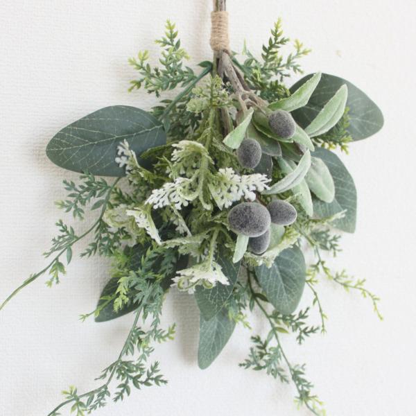 オリーブ ミニリース 壁掛け スワッグ おしゃれ 玄関ドア 送料無料 アーティフィシャルフラワー 造花 フェイクグリーン