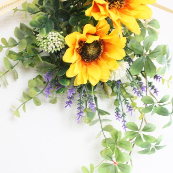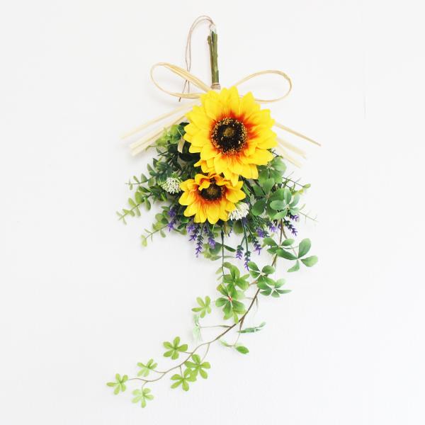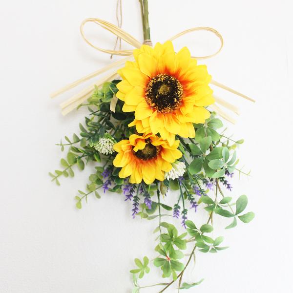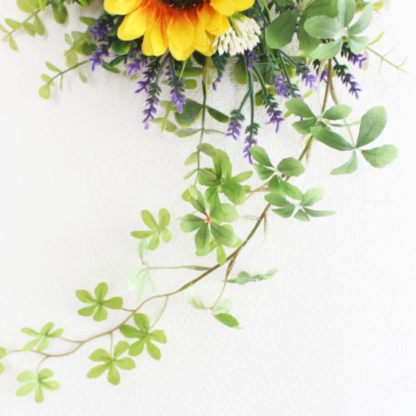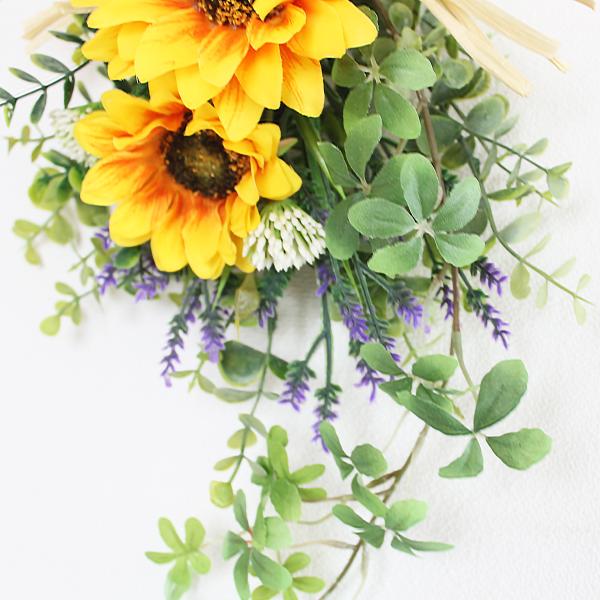 ひまわり シュガーバイン ユーカリ ラベンダー スワッグリース 造花 アーティフィシャルフラワー 夏 ヒマワリ