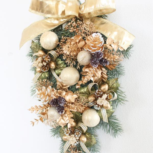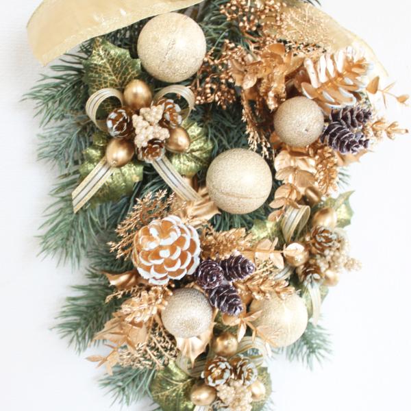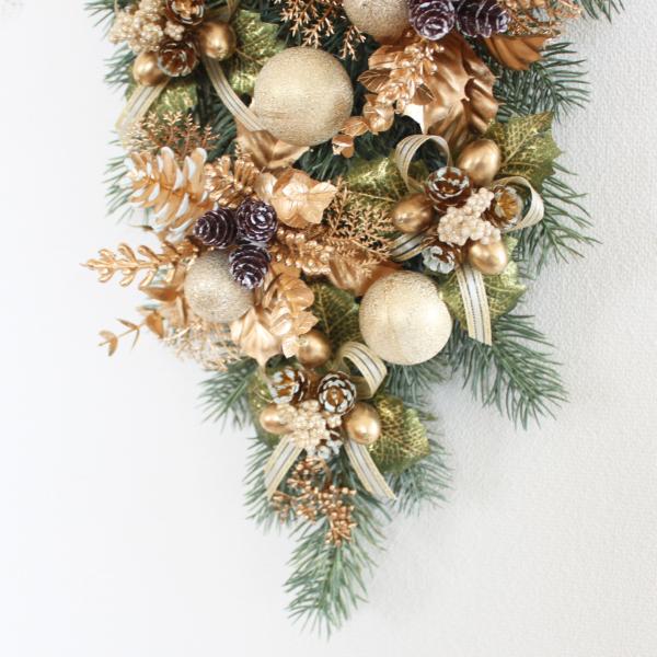 クリスマスリース 送料無料 スワッグリース ゴールド系