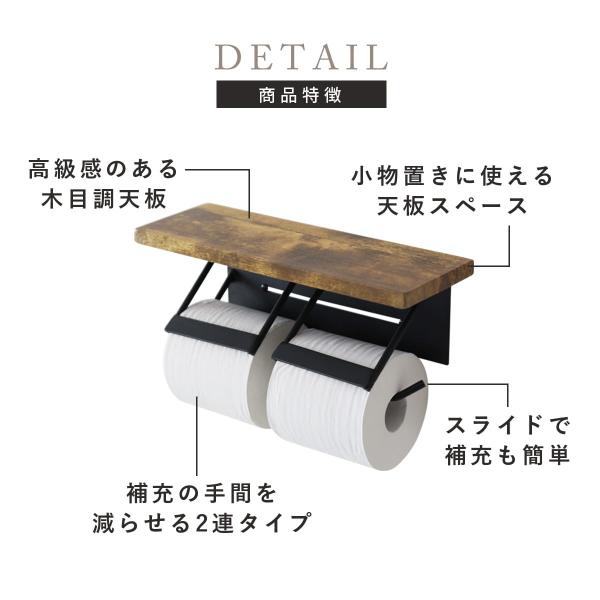 トイレットペーパーホルダー 二連式 天板付き アイアン 小物置き ペーパーホルダー おしゃれ 北欧 トイレ収納 飾り棚 グロウホルダー ドリス