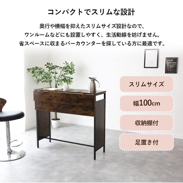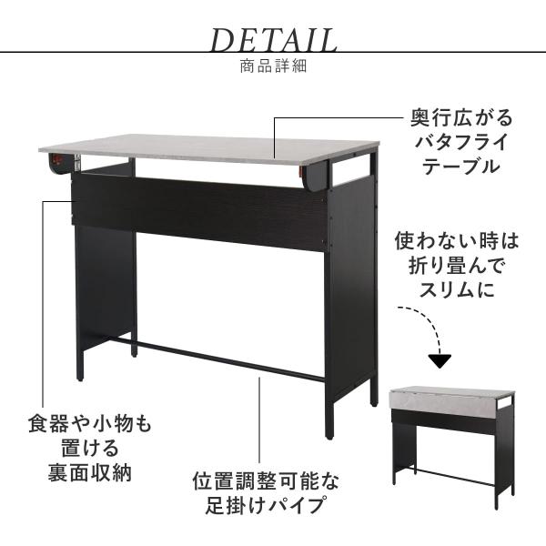 カウンターテーブル バタフライテーブル テーブル ハイテーブル カフェテーブル 収納 省スペース スリム モダン フェイズ おしゃれ ドリス