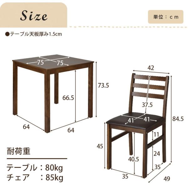 テーブル:幅75×奥行75×高さ73.5(cm)