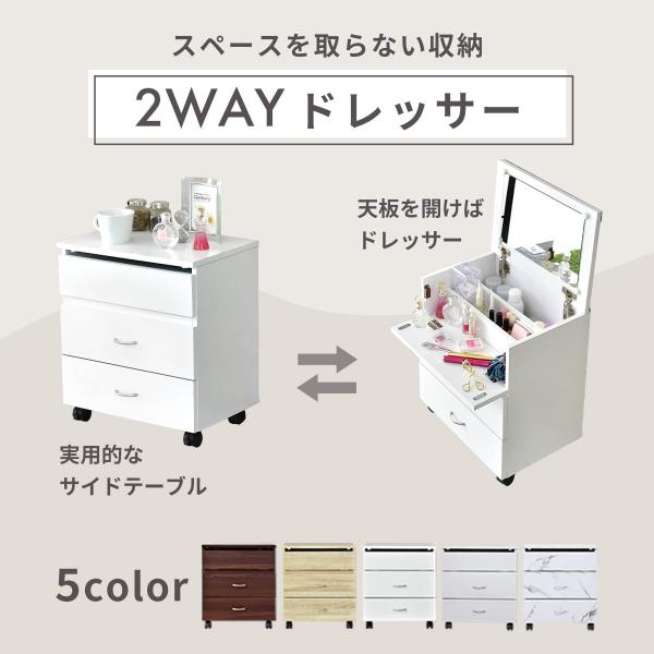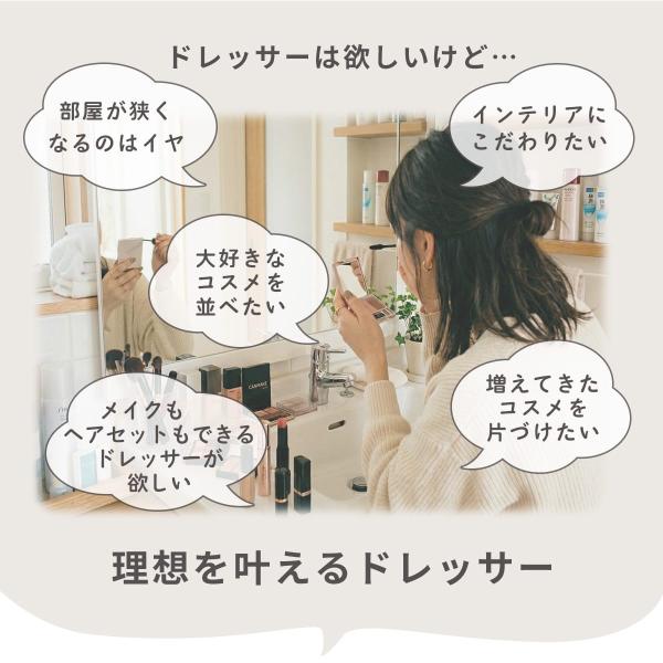 ドレッサー おしゃれ 化粧台 鏡 コンパクト 大容量 キャスター テーブル 机 収納 引出し ドリス コスメワゴン シスネ 北欧 ドリス