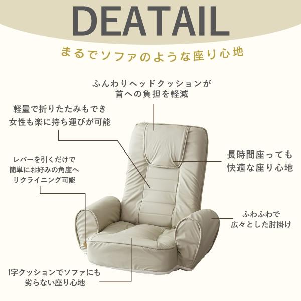 座椅子 おしゃれ コンパクト 座いす 座イス ざいす リクライニング チェア ハイバック 肘掛け付き ラヴァンス 北欧 ドリス