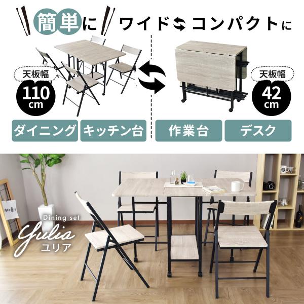 ダイニングテーブル 4人用 伸長式 4人掛け 折りたたみ バタフライ ダイニングチェア ユリア おしゃれ 北欧 ドリス