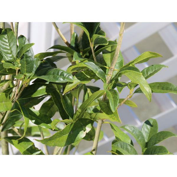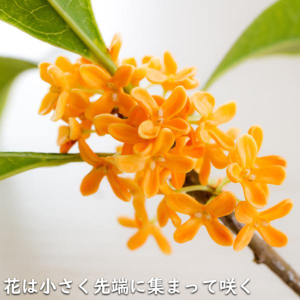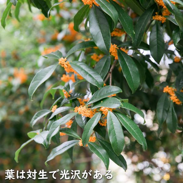 【キンモクセイ】(金木犀) 読み:きんもくせい 学名:Osmanthus fragrans var. aurantiacus モクセイ科モクセイ属 常緑高木 別名:ケイカ、タンケイ、モクセイカ 【商品情報】 綺麗な緑が特徴で生垣によく使われる樹種です。幹が幾つかに分かれて多く分岐して丸型の樹形になります。樹皮は灰褐色で葉は濃緑色です。雌雄異株で日本で栽培されている物はほとんど雄株です。9〜10月にオレンジの小さな花が枝に付け根にビッシリ咲きます。匂いがとてもよく沈丁花、クチナシとともに三香木とされています。モクセイの仲間にはキンモクセイであるオレンジの花のものと、年中咲く四季咲きキンモクセイ、白色のギンモクセイ、淡黄色のウスギモクセイがあります。
