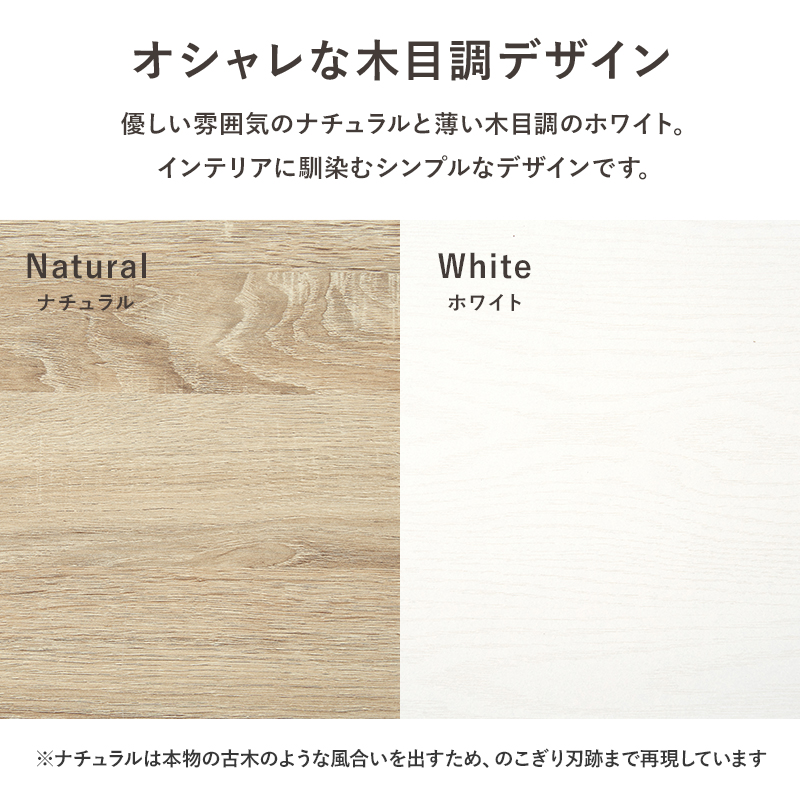 カラーはシンプルなホワイトと木目調がおしゃれなナチュラルの2色から選べます。