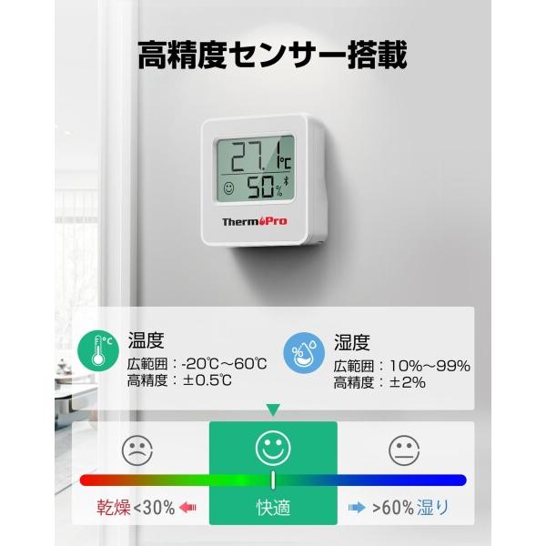 ThermoPro 温湿度計 Bluetooth 温度湿度計 デジタル 温度計 無線 高精度 見やすいデカ文字 スマホで温