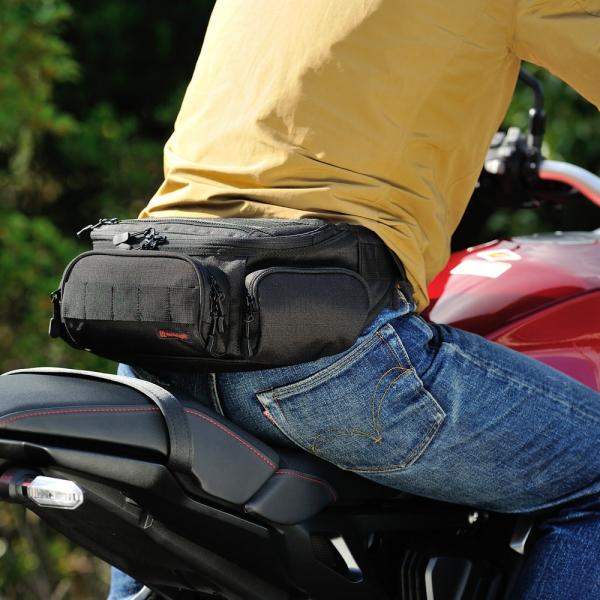 【サイズ】容量:5L 【商品説明】メイン気室、フロント&サイドポケット、メッシュポケットへ収納が可能。 ●メイン気室には、小分けポケットとカードポケットも装備。 ●日帰りツーリングならこれ1つでOKです。 ●引き裂き強度に優れたリップストップ生地を採用。 ●名前のとおり、リップ(裂ける)ストップ(止める)効果が高く、耐摩耗性にも優れています。 ●容量:5L