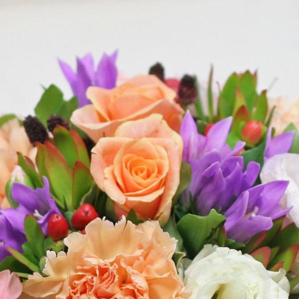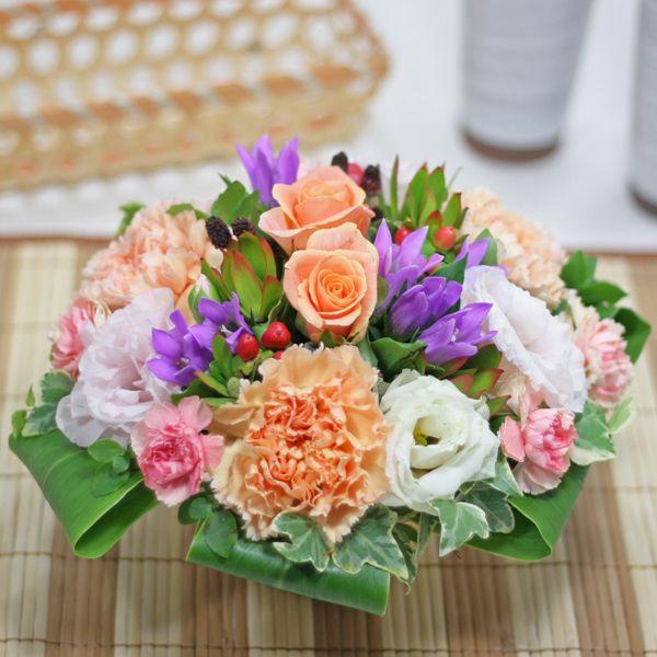 秋のギフトにアレンジメント「みやび」。オーダーメイト制で作るから、新鮮で長持ち!丸い形が可愛いアレンジメントのプレゼント。