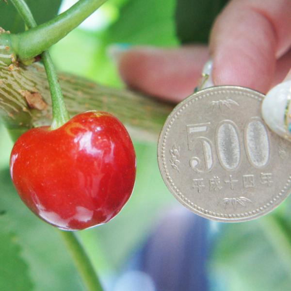 果肉は乳白色で、果肉、果汁ともに多く、品質は国内最高級です。「ナポレオン」と「黄玉」を交配育成され生まれ、現在では「赤いルビー」と呼ばれ、サクランボの中では日本を代表する品種です。