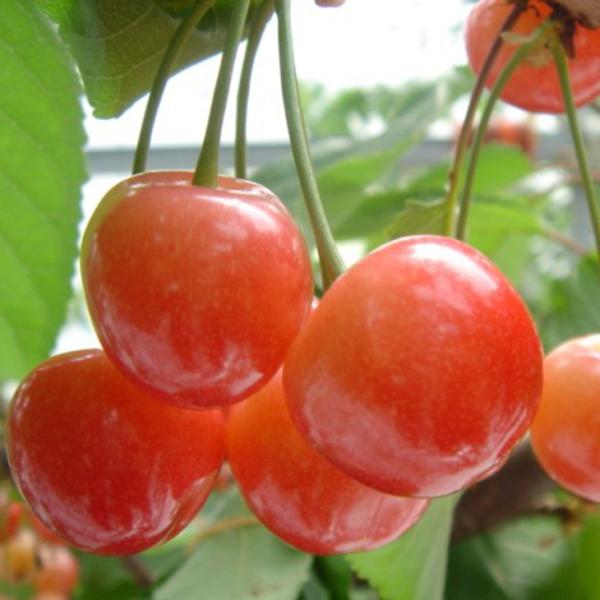 アメリカ生まれの品種で、果肉は乳白色で果汁が多く適度な酸味とほどよい甘さの人気種です。果肉の硬さは佐藤錦と同じ感じで、色はやや明るく黄色地に赤みを帯びており、黄色い部分がやや目立つものが多いです。味はややあっさりとした感じで甘さに加えしっかりとした酸味が感じられます。