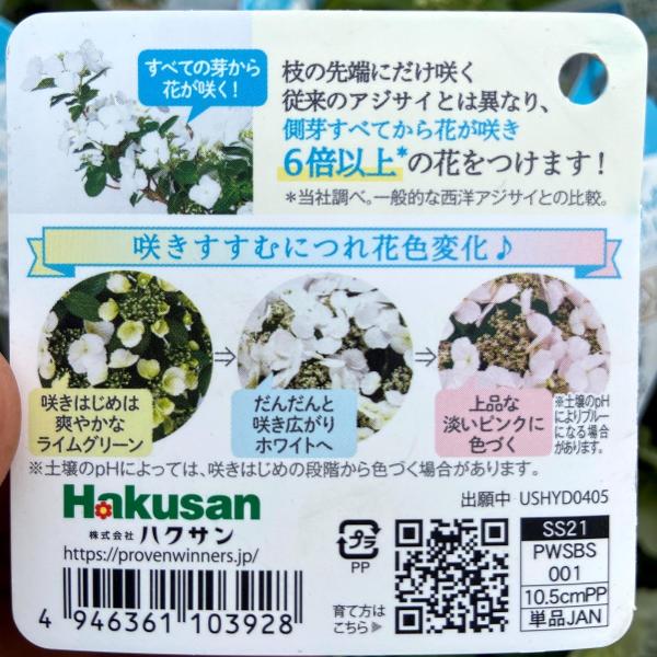 花色は土壌の酸度などによりラベルの色で咲かないこともあります。