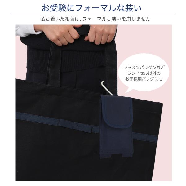 落ち着いた紺色なので、お受験の時にお子様のバッグに取り付けてもフォーマルな装いを崩しません。