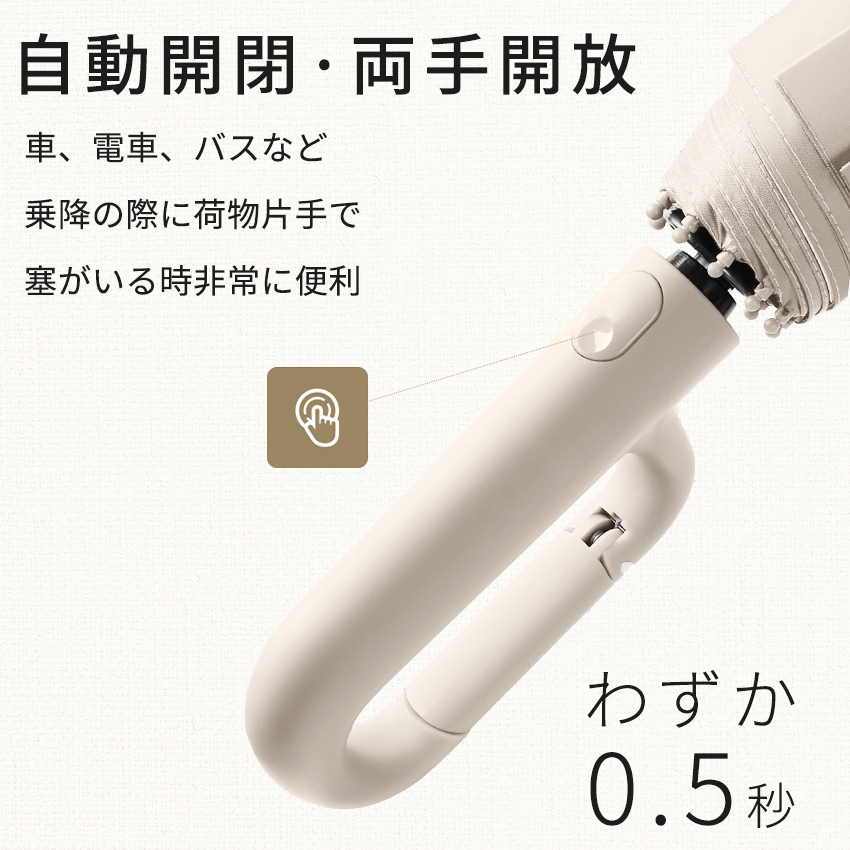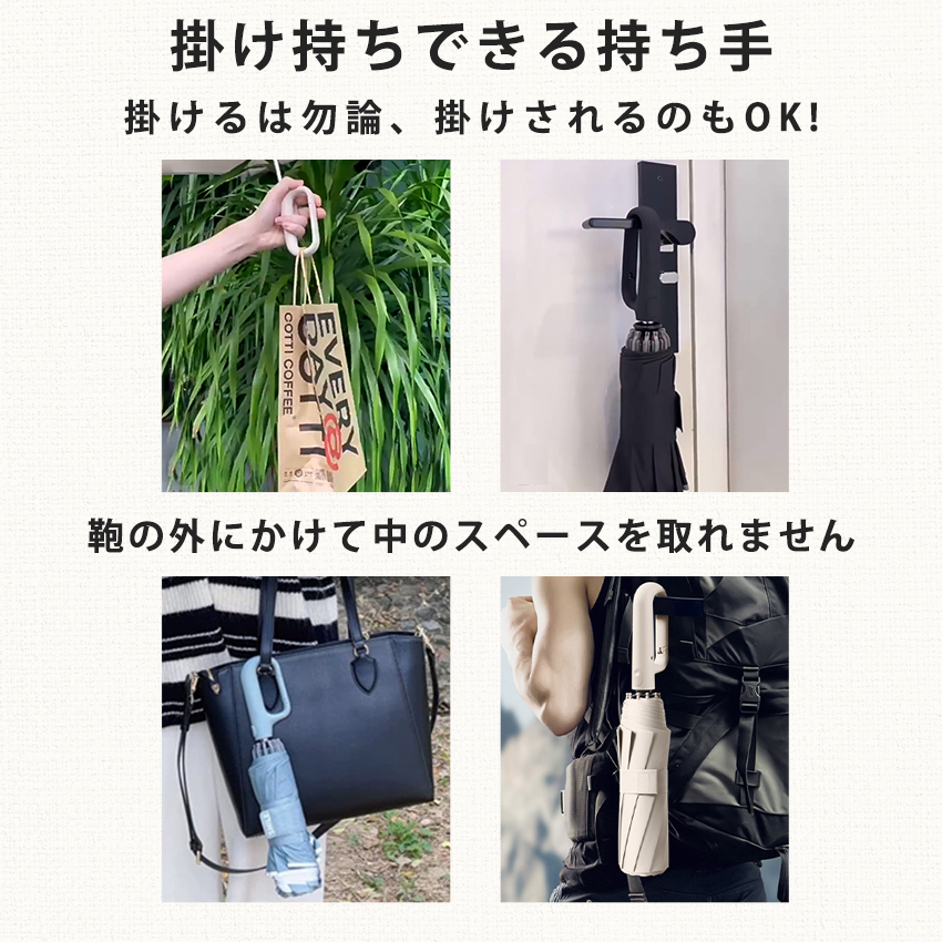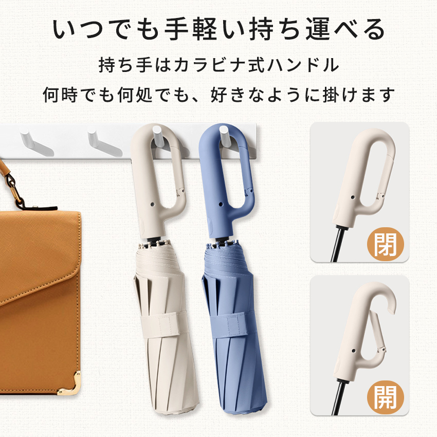 自動開閉 掛け持ち 持ち便利 フック 逆さ傘 晴雨兼用 耐風 収納 携帯便利 折り畳み傘