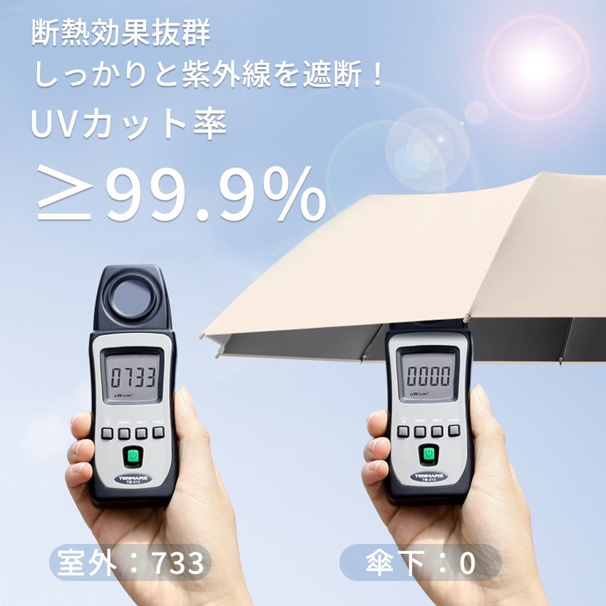 高密度の傘布と日焼け止めのブラックラバーコートを組み合わせた、優れた品質、優れたシェーディング効果、優れた断熱性。UPF50+の紫外線対策や、遮光率100%で紫外線から肌を守ります。晴雨兼用で、機能性に優れています。
