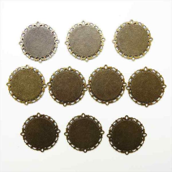 ミール皿 10枚セット 丸皿 a46 アンティークゴールド 金古美 カンなし カン無し 丸 ラウンド レジン アクセサリー パーツ 枠 型枠 モールド セッティング 台座