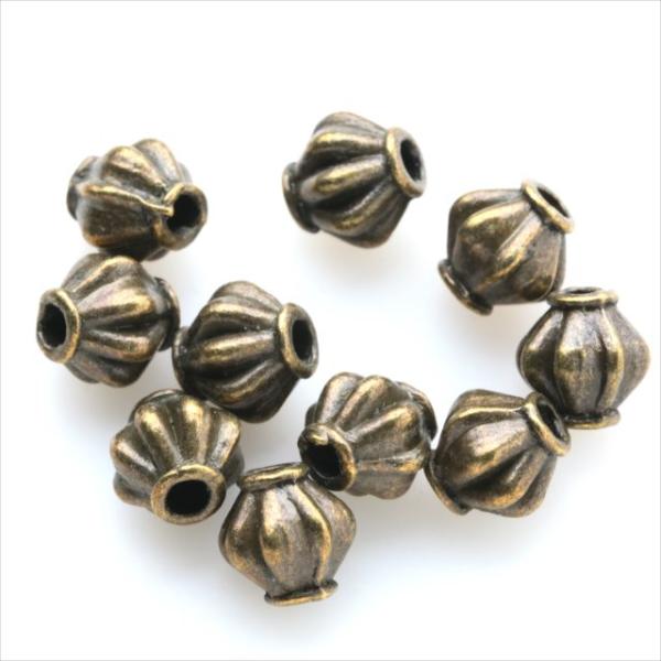 メタルビーズ 10個セット f1 ボール 樽状 アクセサリー パーツ アンティークゴールド 金古美 ロンデル スペーサー 金属 ビーズ 穴 ホール ハンドメイド R-296