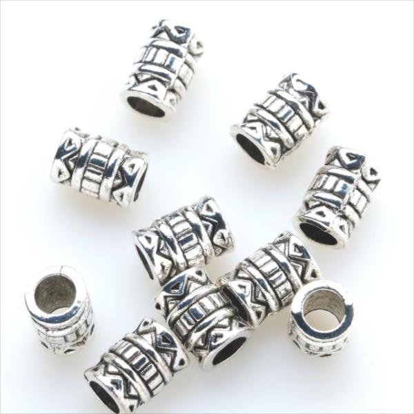 メタルビーズ 10個セット i2 筒状 アクセサリー パーツ シルバー 銀 ロンデル スペーサー 金属 金具 留め具 ビーズ 穴 ホール 手作り ハンドメイド 手芸 R-313