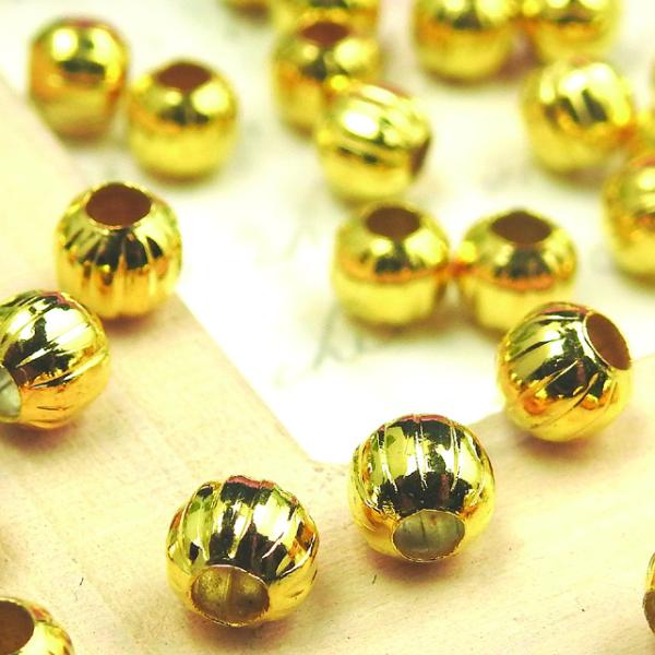 線入りデザインのゴールド6mmメタルビーズ!アクセサリーパーツに
