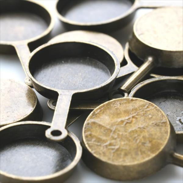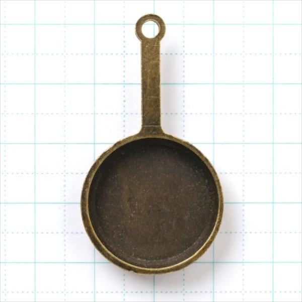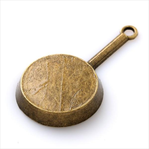 金古美 チャーム 1個 フライパン ミール皿にも アンティークゴールド アクセサリー パーツ キッチン カン付き 金具 金属 メタル ピアス レジン 素材 T-230