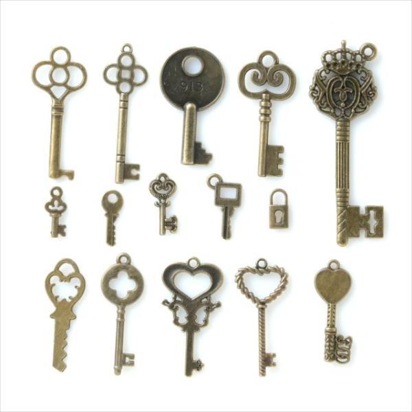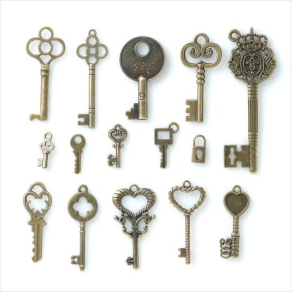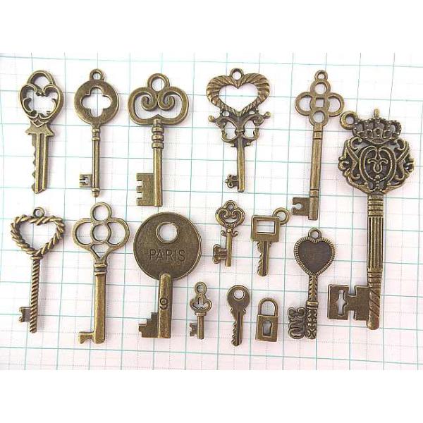 鍵のメタルチャーム15種セットです!アクセサリーのパーツに!!