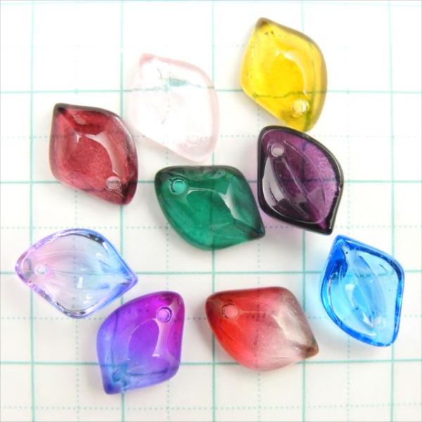 選べるカラー20個!14mmリーフ型ガラス製ビーズのパーツです!